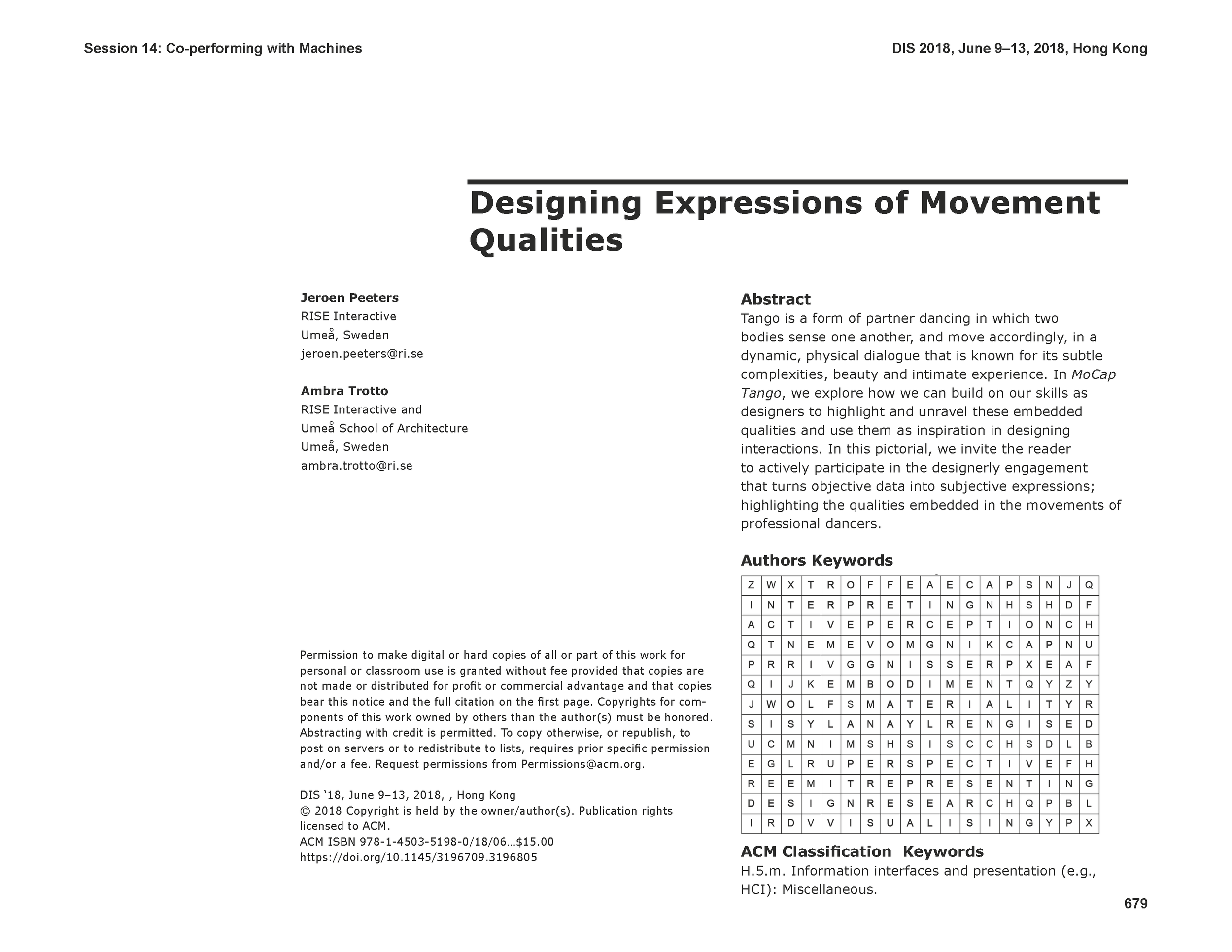 2018, Designing Interactive Systems (DIS) Conference